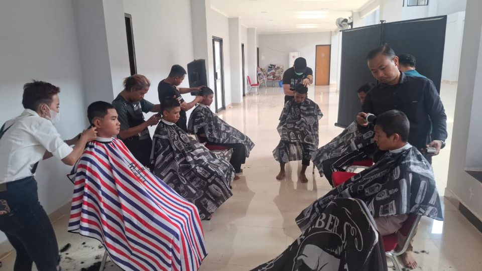 Dalam kegiatan ini, Dinsos menghadirkan lima instruktur profesional bersama tiga orang lulusan hasil pelatihan cukur binaan Dinsos Kota Tangerang.
