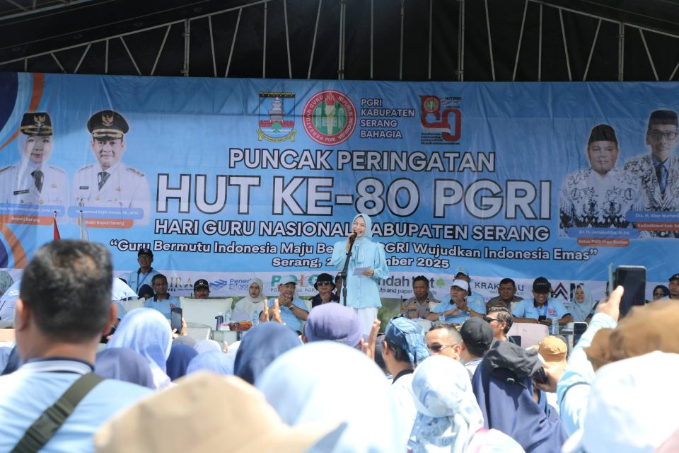 Hal ini disampaikan Ratu Zakiyah sapaan Ratu Rachmatuzakiyah saat menghadiri Peringatan Puncak Hari Ulang Tahun (HUT) ke-80 PGRI dan Hari Guru Nasional (HGN) bertemakan ’guru bermutu indonesia maju, tingkat Kabupaten Serang pada Selasa, 25 November 2025 di Pantai Florida Kecamatan Cinangka.