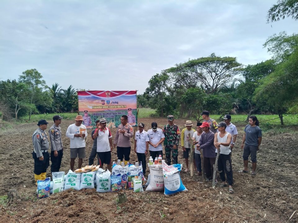 SERANG (bantenbersatu.co.id) – Dalam rangka mendukung swasembada pangan, Polsek Carenang, Polres Serang, memberikan bantuan serta melaksanakan penanaman jagung Kuartal III seluas 0,6 hektar di Kampung Cogrek, Desa Lamaran, Kecamatan Binuang, Kabupaten Serang, Rabu (20/8/2025)